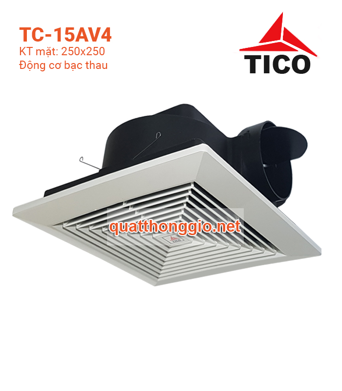 Quạt hút gió âm trần TICO TC15AV4 là sản phẩm của CÔNG TY TNHH ĐIỆN CƠ ĐIỆN TỬ VIỆT NHẬT. Hàng sản xuất tại Việt Nam. Dòng sản phẩm tiêu chuẩn động cơ bạc thau, chuyên sử dụng cho nhà vệ sinh, toilet. Thiết kế tối ưu cho trần thạch cao, trần gỗ, trần nhựa. Dưới đây là những đặc điểm chính của sản phẩm.